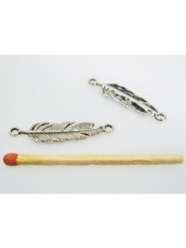Feder-Anhänger aus Eisen - 45 x 11 x 4 mm - silberfarben