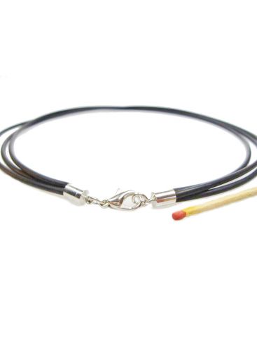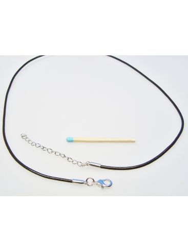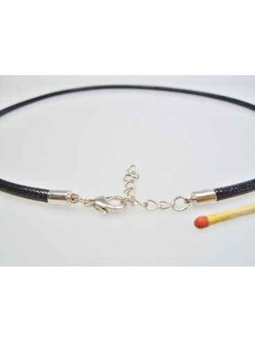 Collier aus Wachskordel - 47 cm +5 cm Kettchen - 3,5 mm Ø Kordel - silberfarben-schwarz